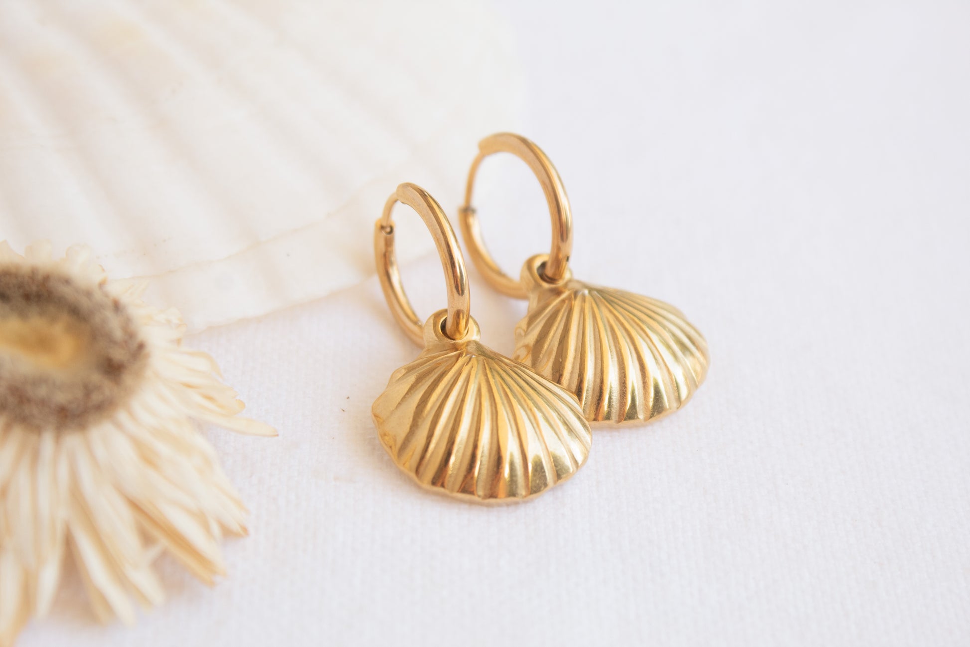 Like little talismans from the sea, these golden shell earrings carry the calm, grounding energy of the ocean. Their soft shine and natural shape add a gentle statement to any look.